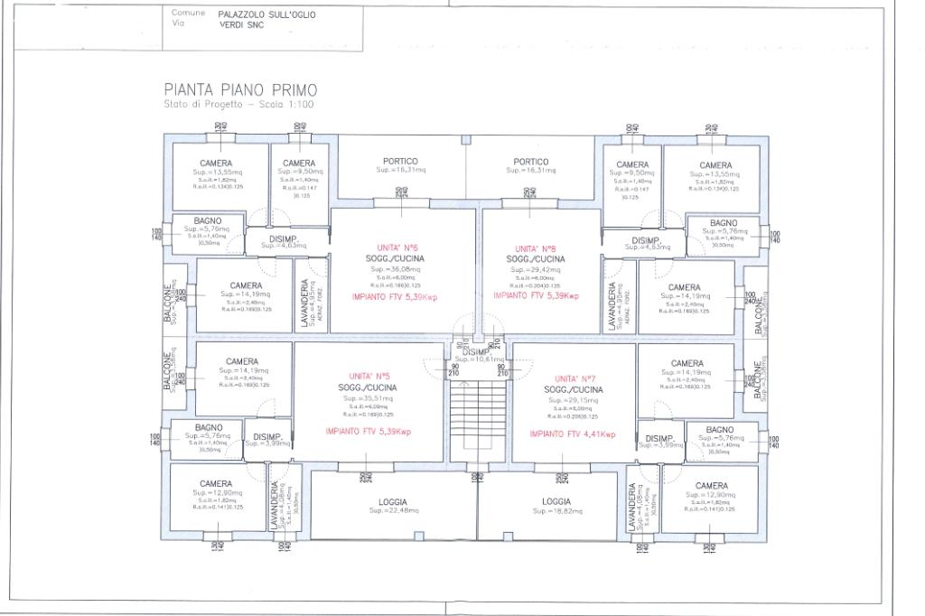 Spazi accessori e dotazioni condominiali. Nell'interrato sono presenti spazi comuni funzionali, tra cui un locale adibito a deposito biciclette e un locale dedicato al deposito dei bidoni per la raccolta dei rifiuti. Sempre al piano interrato si trova infine il locale tecnico, al cui interno sono installati gli inverter degli impianti.