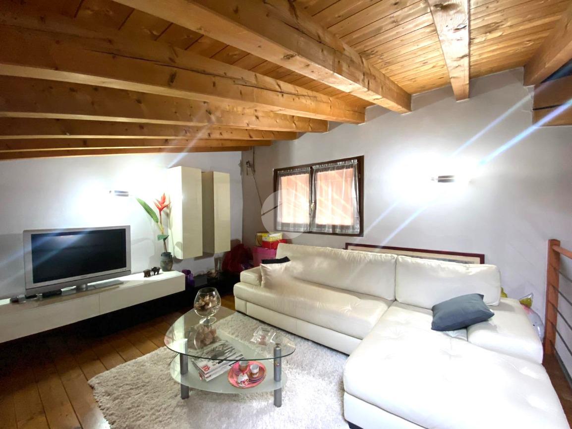 L'immobile in questione si sviluppa su due livelli. All'ingresso veniamo accolti dalla zona giorno in openspace, luminosa e accogliente. Un disimpegno conduce invece alla zona notte composta da una camera da letto matrimoniale. A completare il piano bagno finestrato, dotato sia di vasca sia di doccia e ripostiglio attualmente adibito a piccola palestra.