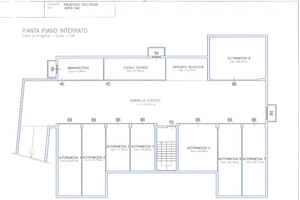 Spazi accessori e dotazioni condominiali. Nell'interrato sono presenti spazi comuni funzionali, tra cui un locale adibito a deposito biciclette e un locale dedicato al deposito dei bidoni per la raccolta dei rifiuti. Sempre al piano interrato si trova infine il locale tecnico, al cui interno sono installati gli inverter degli impianti.