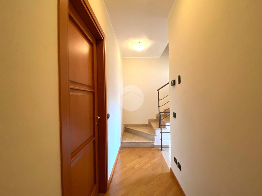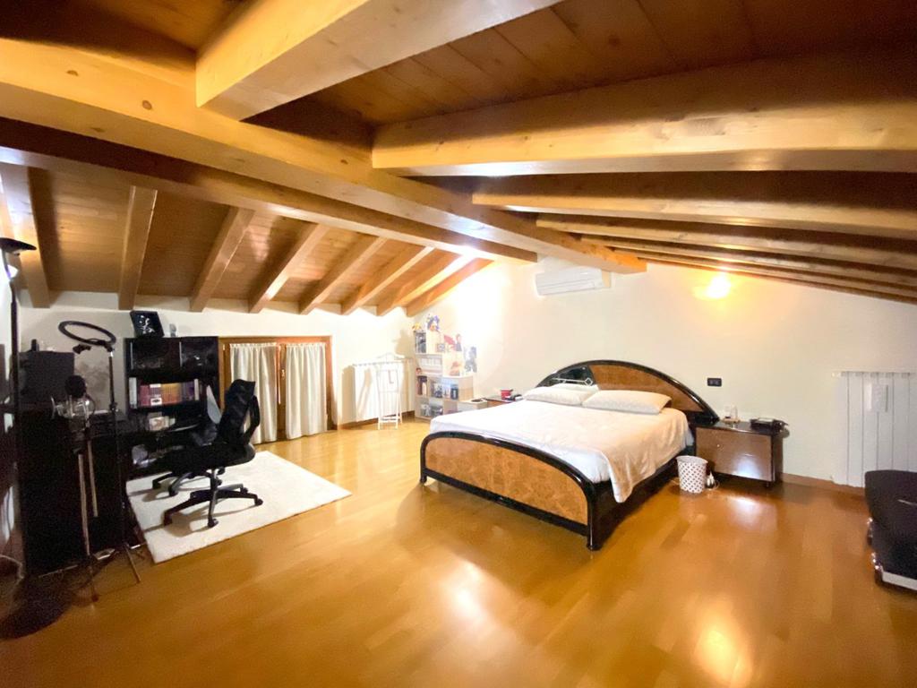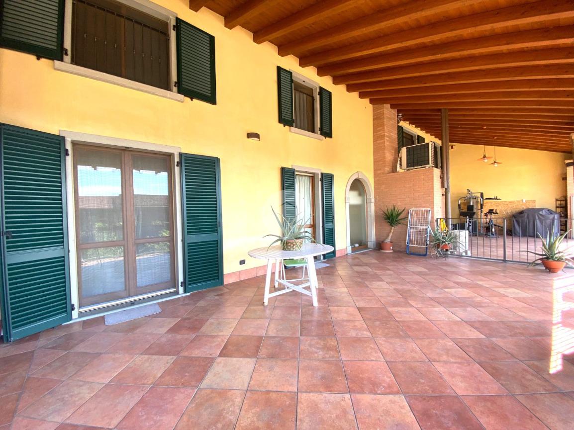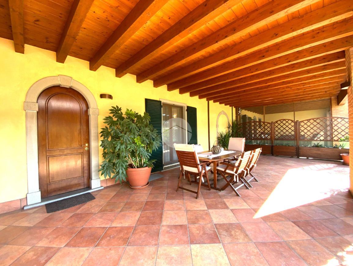 PALAZZOLO: Zona San Rocco, in ottimo contesto residenziale caratterizzato da villette a schiera. L'immobile ha una posizione centrale ed è servito da giardino fronte e retro; disposto su tre livelli oltre al piano interrato. Il piano terra è composto dall'ingresso sul luminoso soggiorno, cucina separata, bagno di servizio con doccia e doppio giardino: sul fronte e sul retro della casa. Salendo le scale al primo piano veniamo accolti da un disimpegno che conduce alla zona notte impreziosita da un bellissimo parquet, con due camere da letto matrimoniali, di cui una con cabina armadio e affaccio diretto su uno spazioso portico coperto. Presente ulteriore bagno servito da vasca idromassaggio. Nell'interrato invece, presente box doppio in larghezza, lavanderia con doccia e taverna caratterizzata dal camino. A completare la soluzione, spazioso sottotetto.