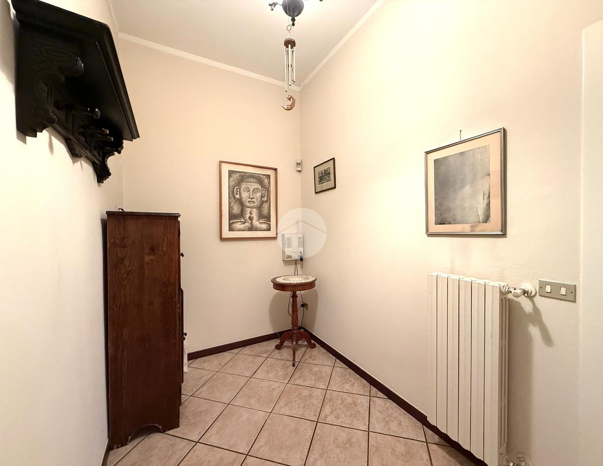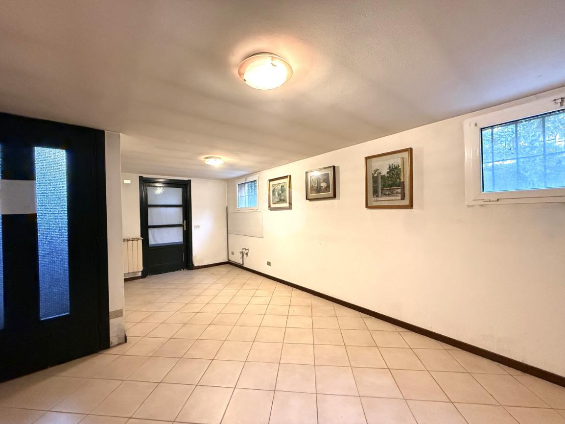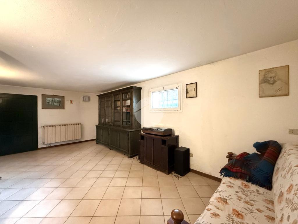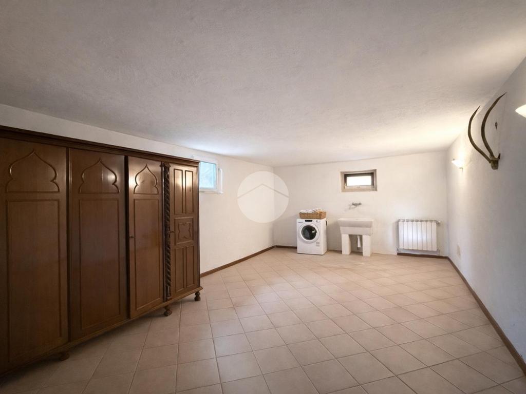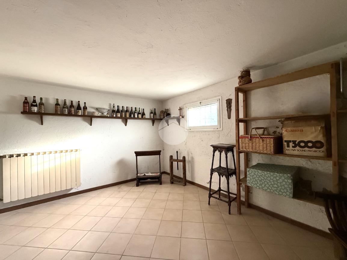 Il piano interrato offre poi ulteriori spazi versatili e di grande valore: una caratteristica taverna con camino, un secondo bagno servito da doccia, una lavanderia e quattro locali adibiti a cantina, utili come deposito o per la conservazione di vini e provviste.